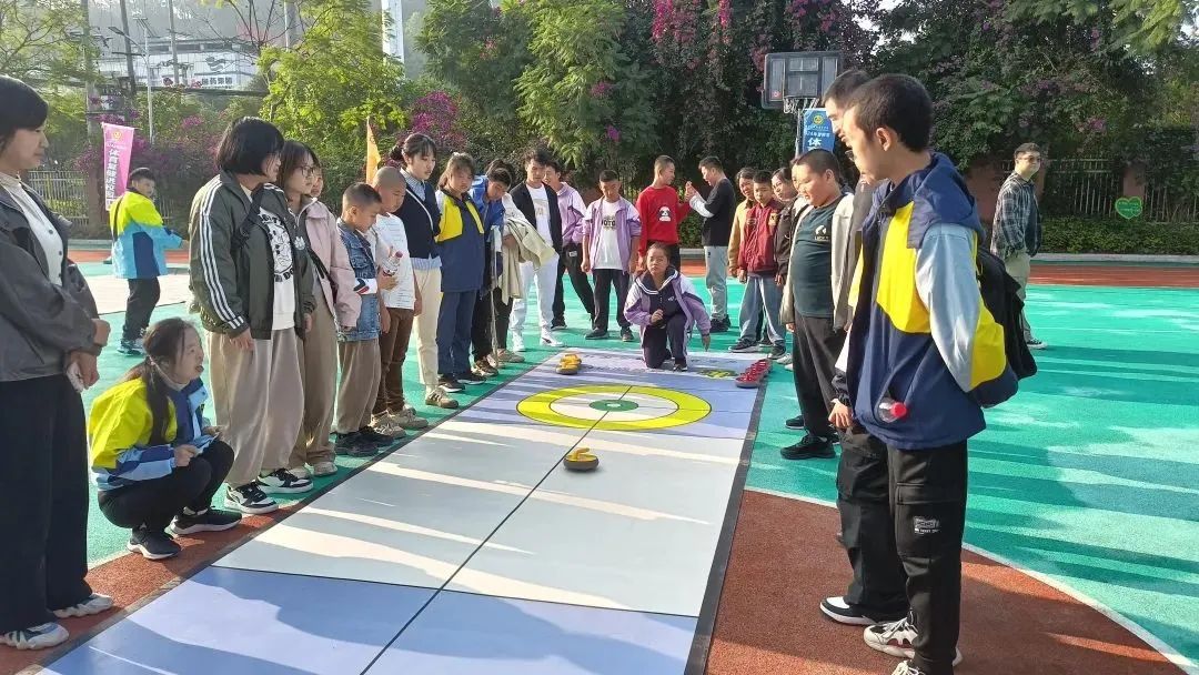 赛场上,同学们以饱满的热情,全身心地投入比赛。特奥滚球比赛中,孩子们个个聚精会神,握球、瞄准、下蹲、投掷,一系列动作驾轻就熟;在旱地冰壶的竞技场上,孩子们相互鼓劲,虽然动作稍显生涩,但眼神中闪烁着对胜利的坚定光芒,在同伴的温情鼓舞和教师的悉心指导下,他们逐渐找到了自己的节奏,每一次成功的投掷,都赢得了全场观众的热烈掌声。