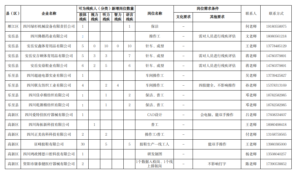 资阳市适残就业岗位招聘信息